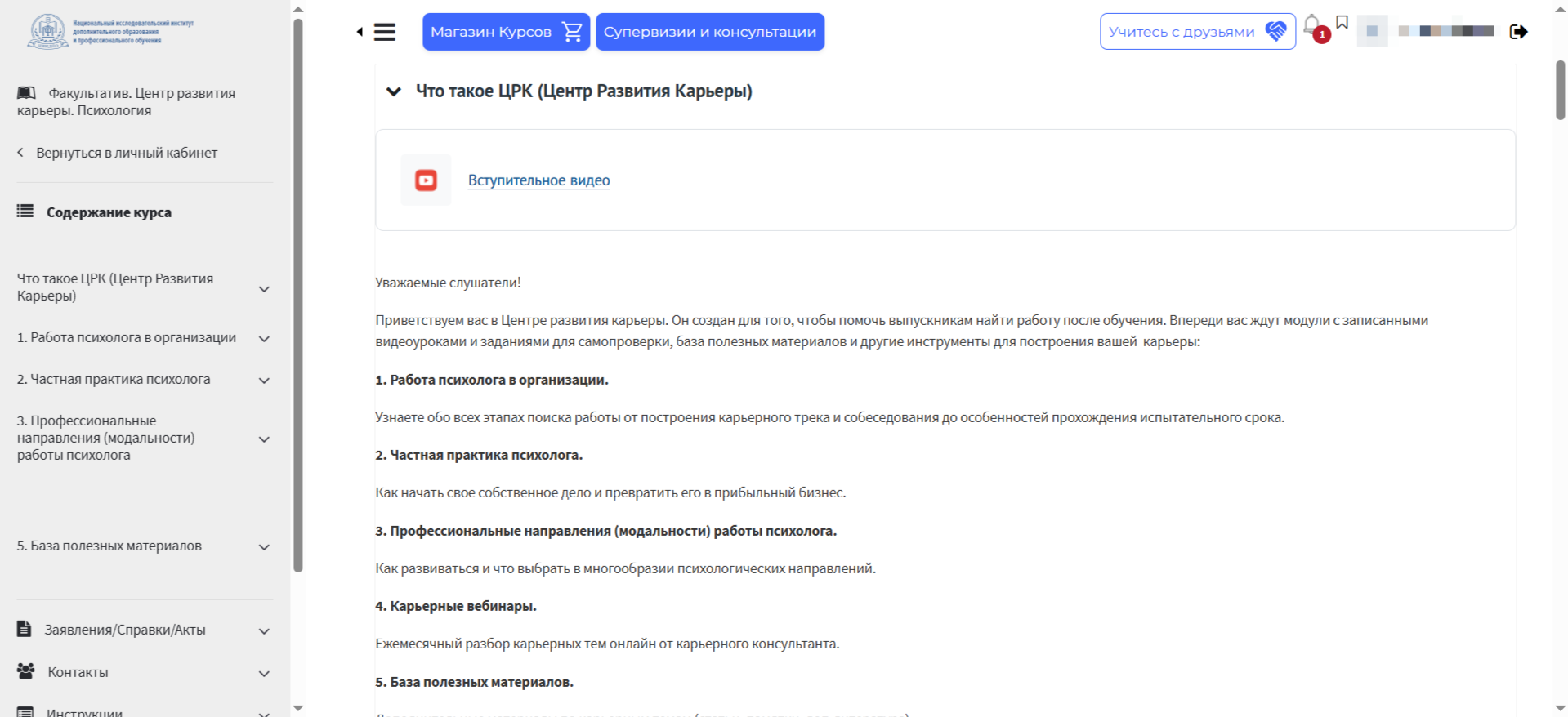 Смотрите процесс обучения в личном кабинете