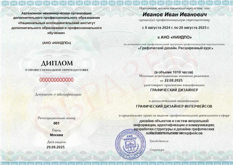 Учебный план программы профессиональной переподготовки «Графический дизайн. Расширенный курс» с присвоением квалификации «Графический дизайнер» с дополнительной квалификацией «Графический дизайнер интерфейсов»