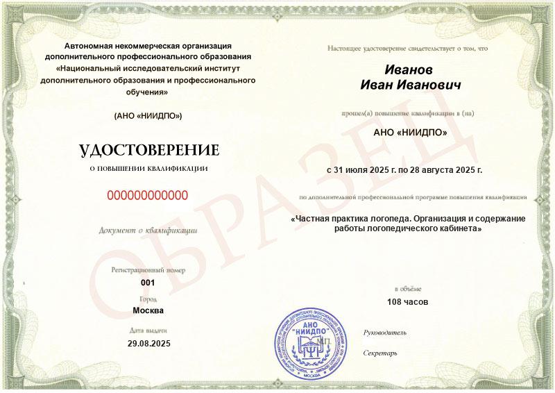 Обзор программы повышения квалификации «Частная практика логопеда. Организация и содержание работы логопедического кабинета»