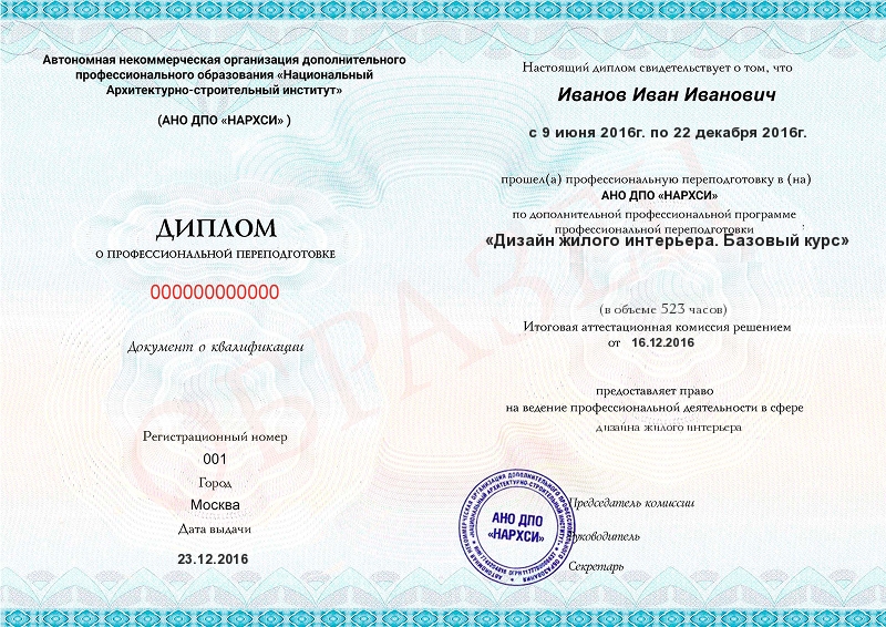 Дизайн жилого интерьера. Базовый курс (523ч)
