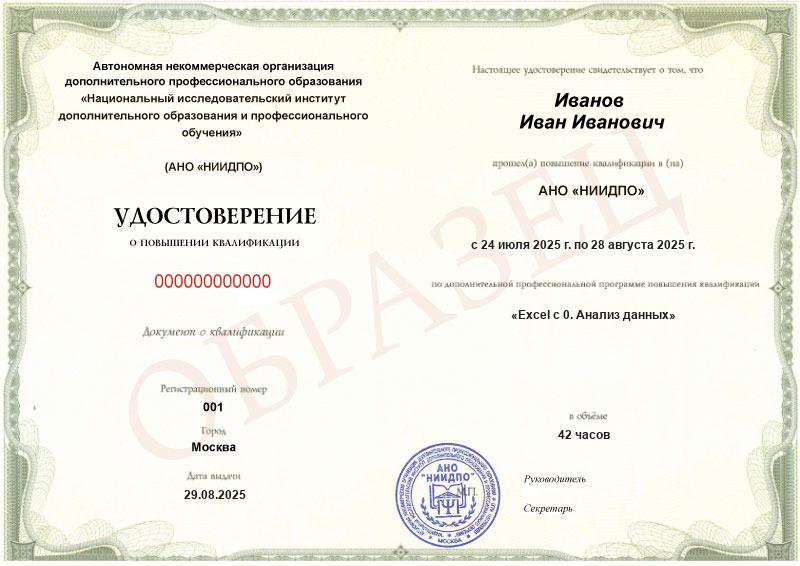 Учебный план программы повышения квалификации «Exсel с 0. Анализ данных»