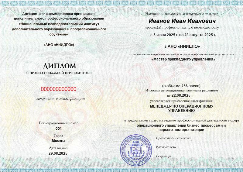 - Квалификация: Менеджер по операционному управлению