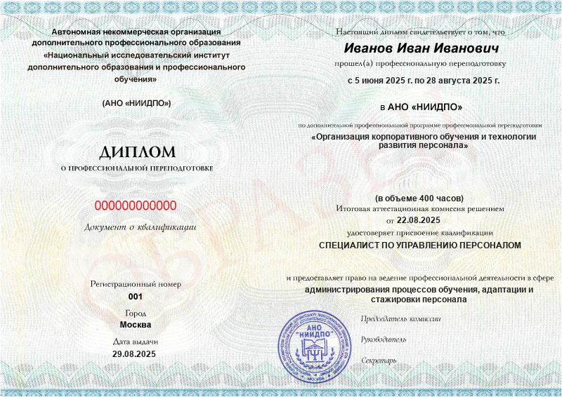 Обзор программы профессиональной переподготовки «Организация корпоративного обучения и технологии развития персонала» с присвоением квалификации «Специалист по управлению персоналом»