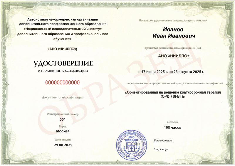 Ориентированная на решение краткосрочная терапия (ОРКТ/ SFBT) (108ч)
