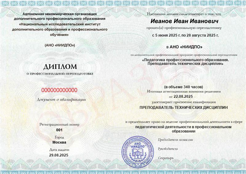 Да, документы оформляются на бланках с защитой от подделок, заполняются на русском языке, в них ставится печать АНО «НИИДПО».