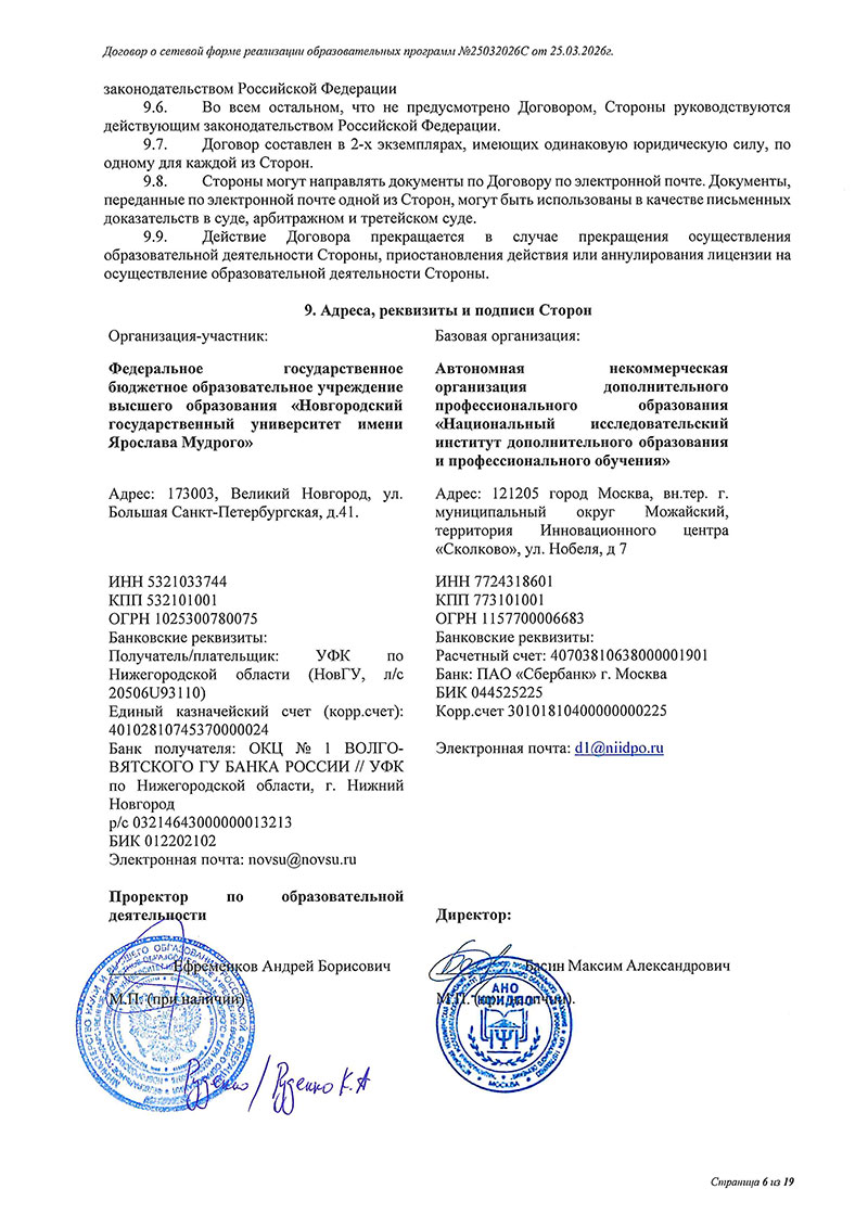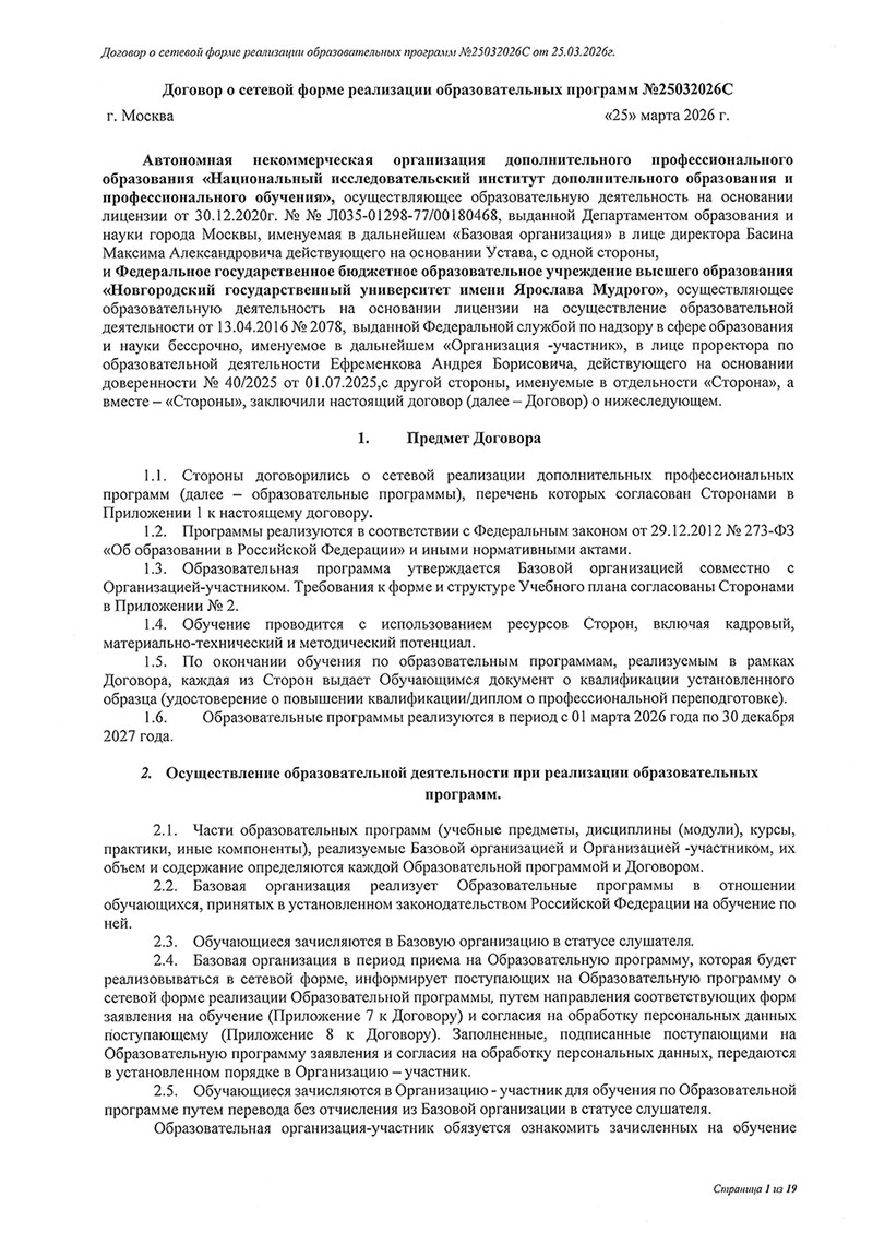 Договор между НовГУ и АНО «НИИДПО»