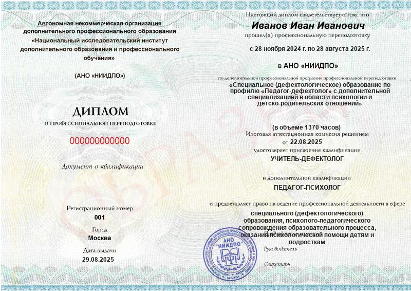 Обзор программы профессиональной переподготовки «Специальное (дефектологическое) образование по профилю «Педагог-дефектолог» с дополнительной специализацией в области психологии и детско-родительских отношений» с присвоением квалификации «Учитель-дефектолог» с дополнительной квалификацией «Педагог-психолог»