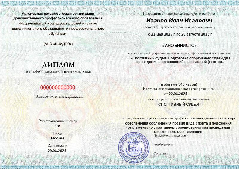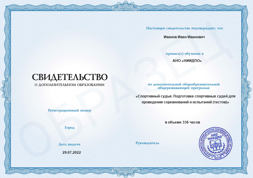 Дистанционное обучение на спортивного судью позволит вам научиться организовывать и проводить судейство матчей, турниров, чемпионатов, первенств, кубков, олимпиад. Начните работать сразу после получения диплома.