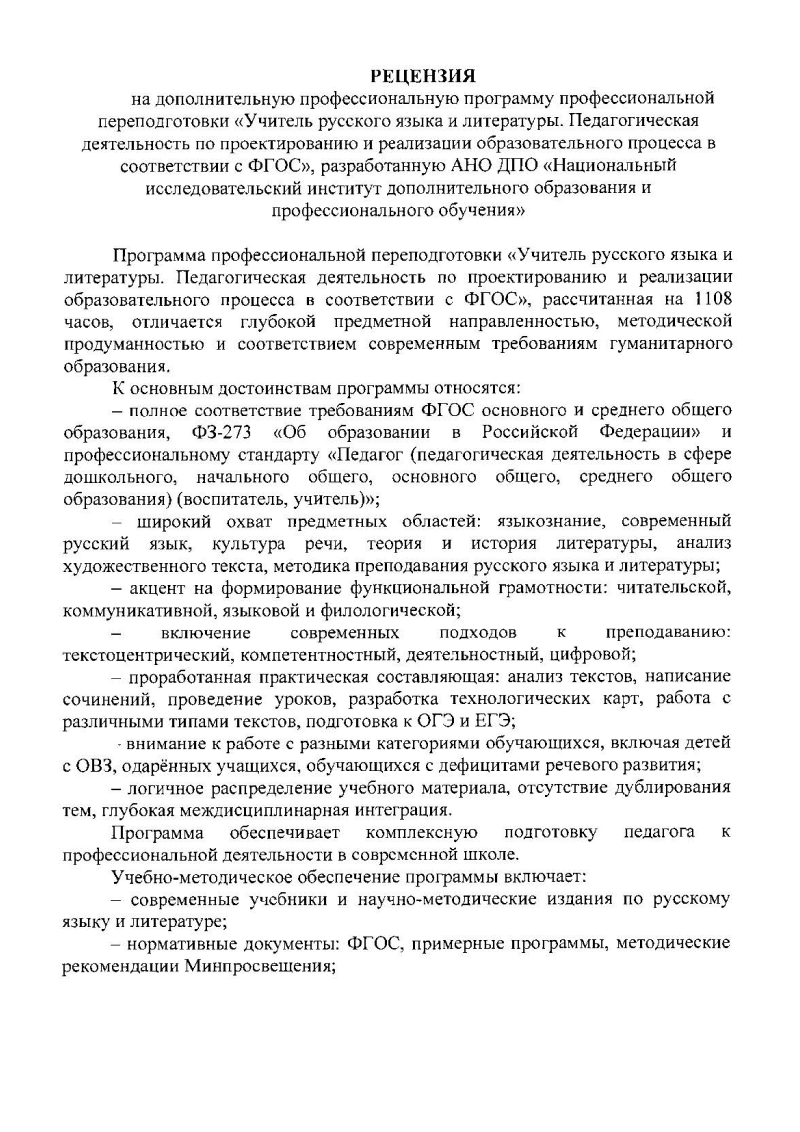 Обзор программы профессиональной переподготовки «Учитель русского языка и литературы. Педагогическая деятельность по проектированию и реализации образовательного процесса в соответствии с ФГОС» с присвоением квалификации «Учитель русского языка и литературы»